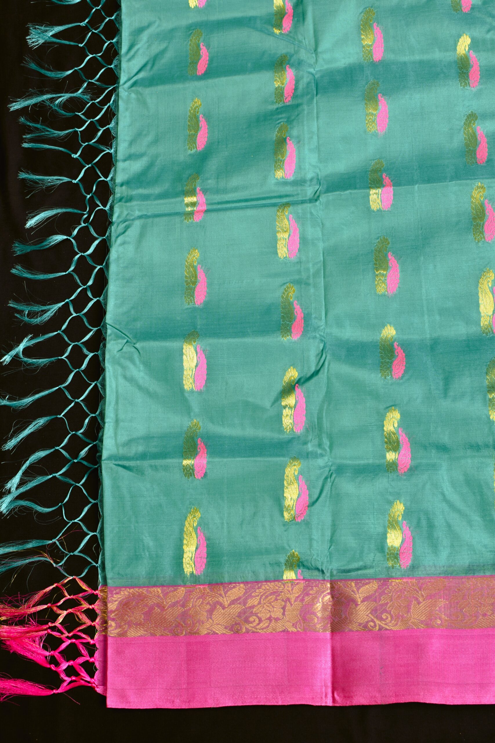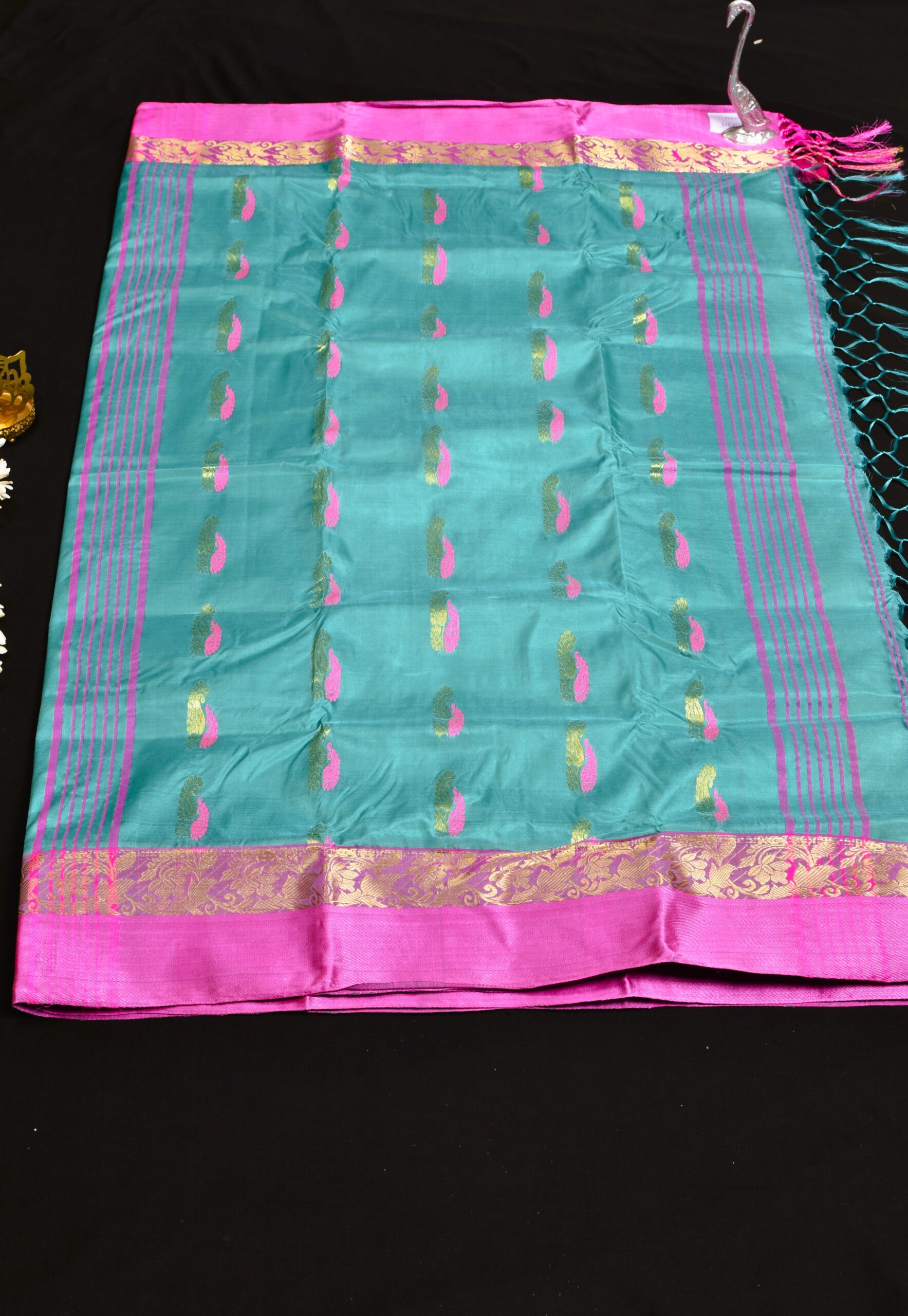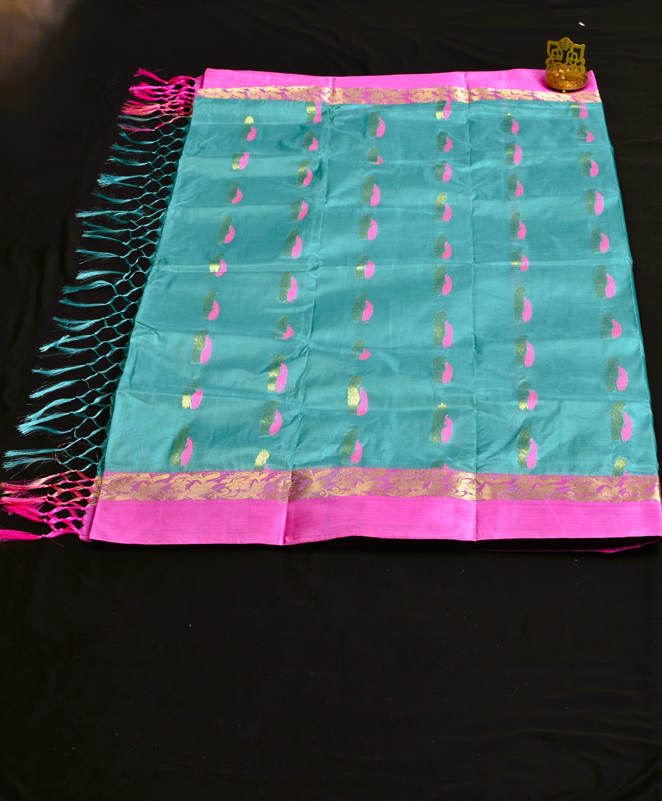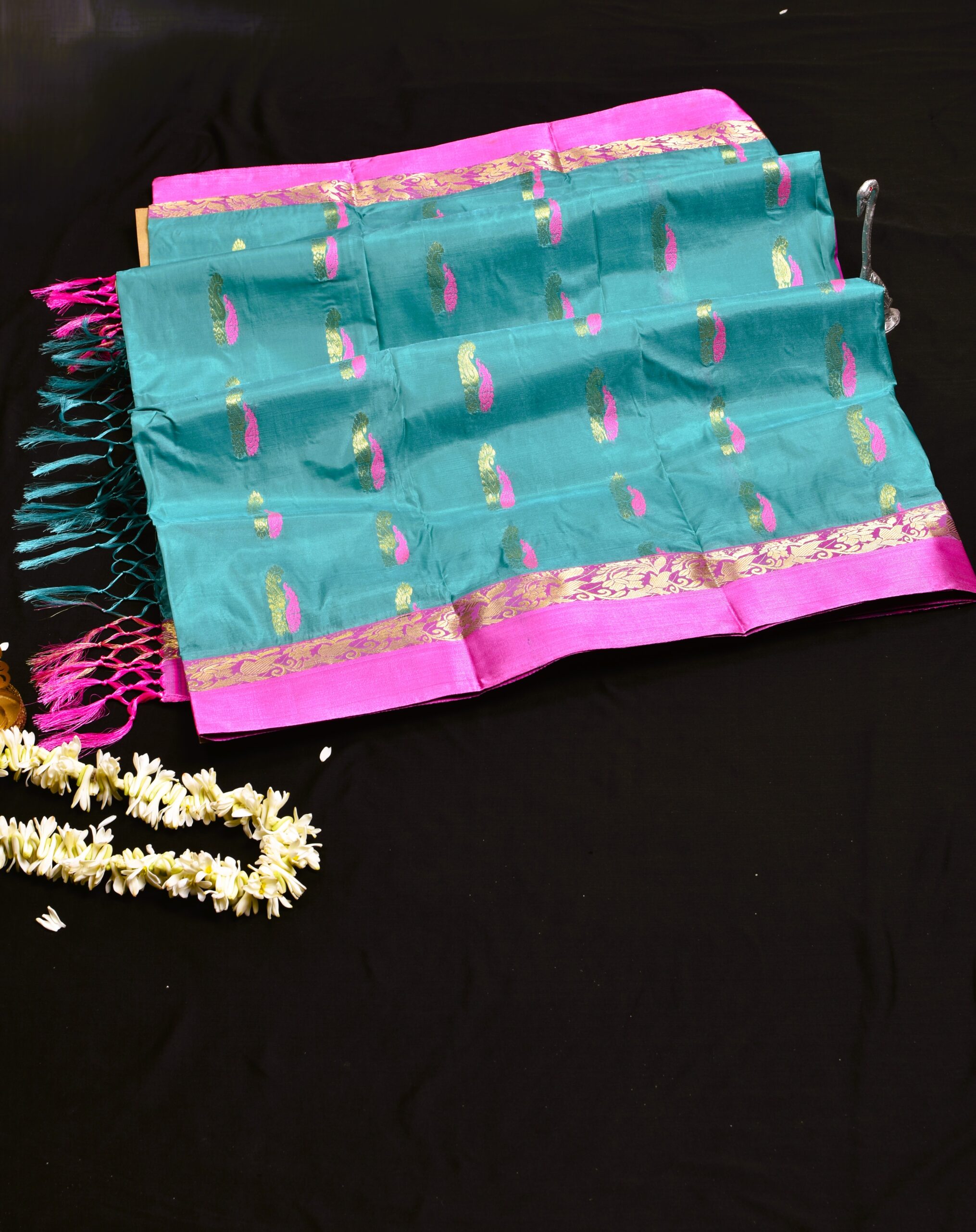 Make a style statement in this enchanting cotton silk saree in unique and contrast colour shades !