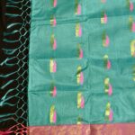 Dress Details: Tant saree with zari border work and all over small motifs. Blouse piece attached.