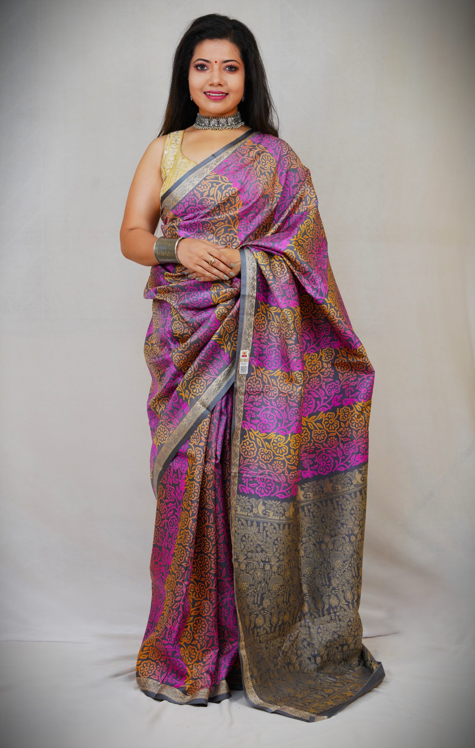 A versatile pure silk saree, suitable for both ethnic celebrations and corporate gatherings. Must for your wardrobe.