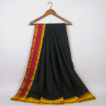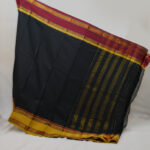 Dress Details: Pure cotton saree in black, featuring ‘Ganga Jamuna’ border in yellow and maroon colour. Blouse piece not included.