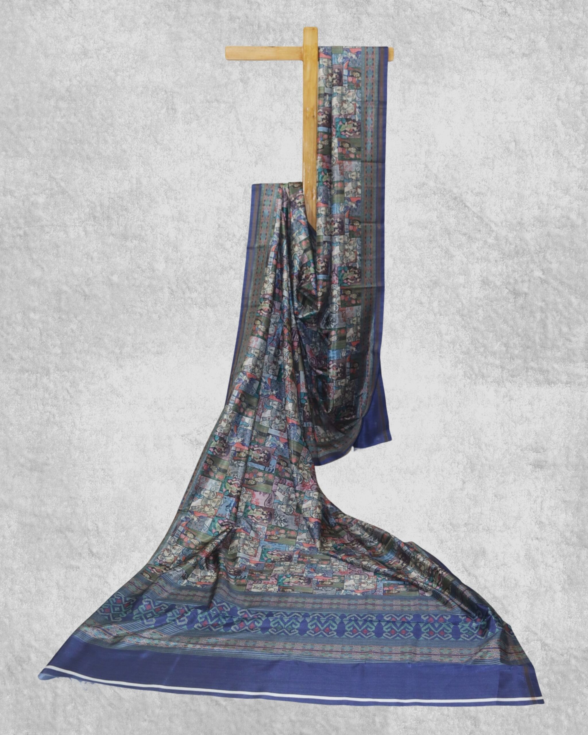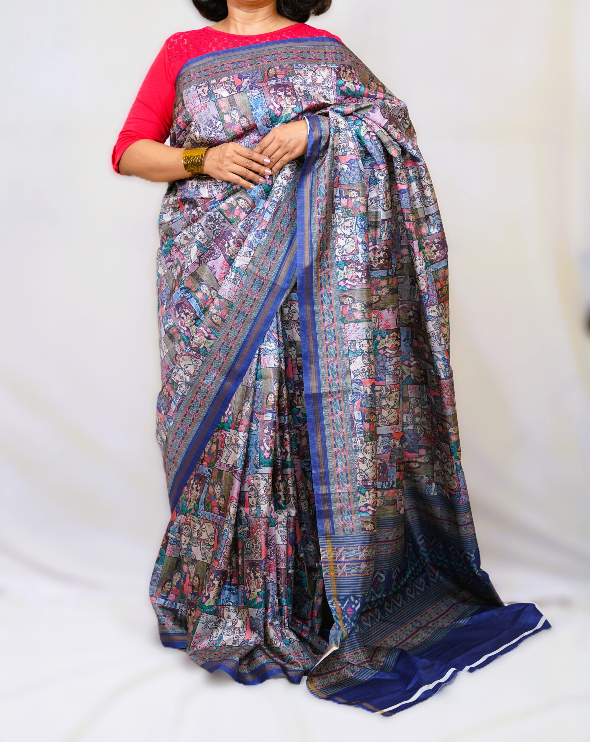 A beautifully composed saree showcasing smart storytelling prints. Suitable for on various occasions