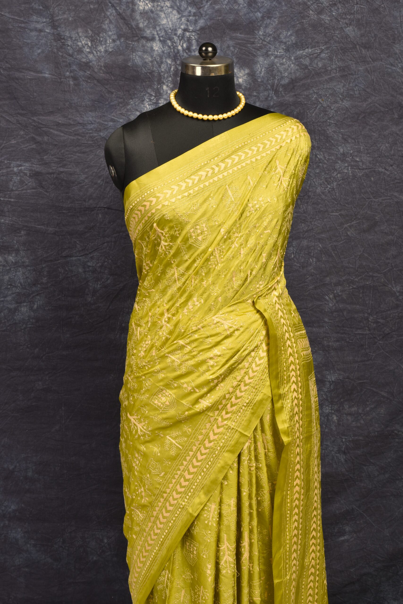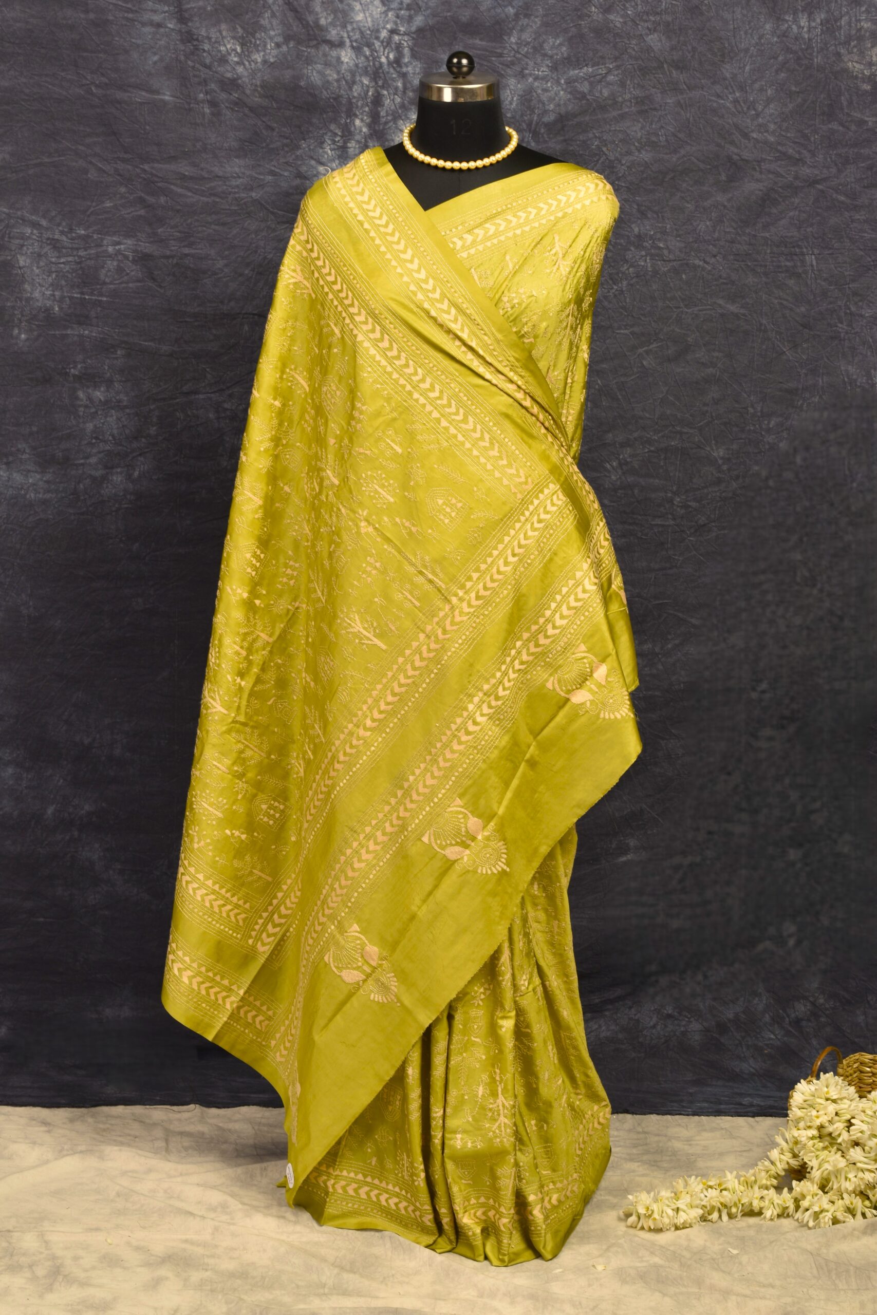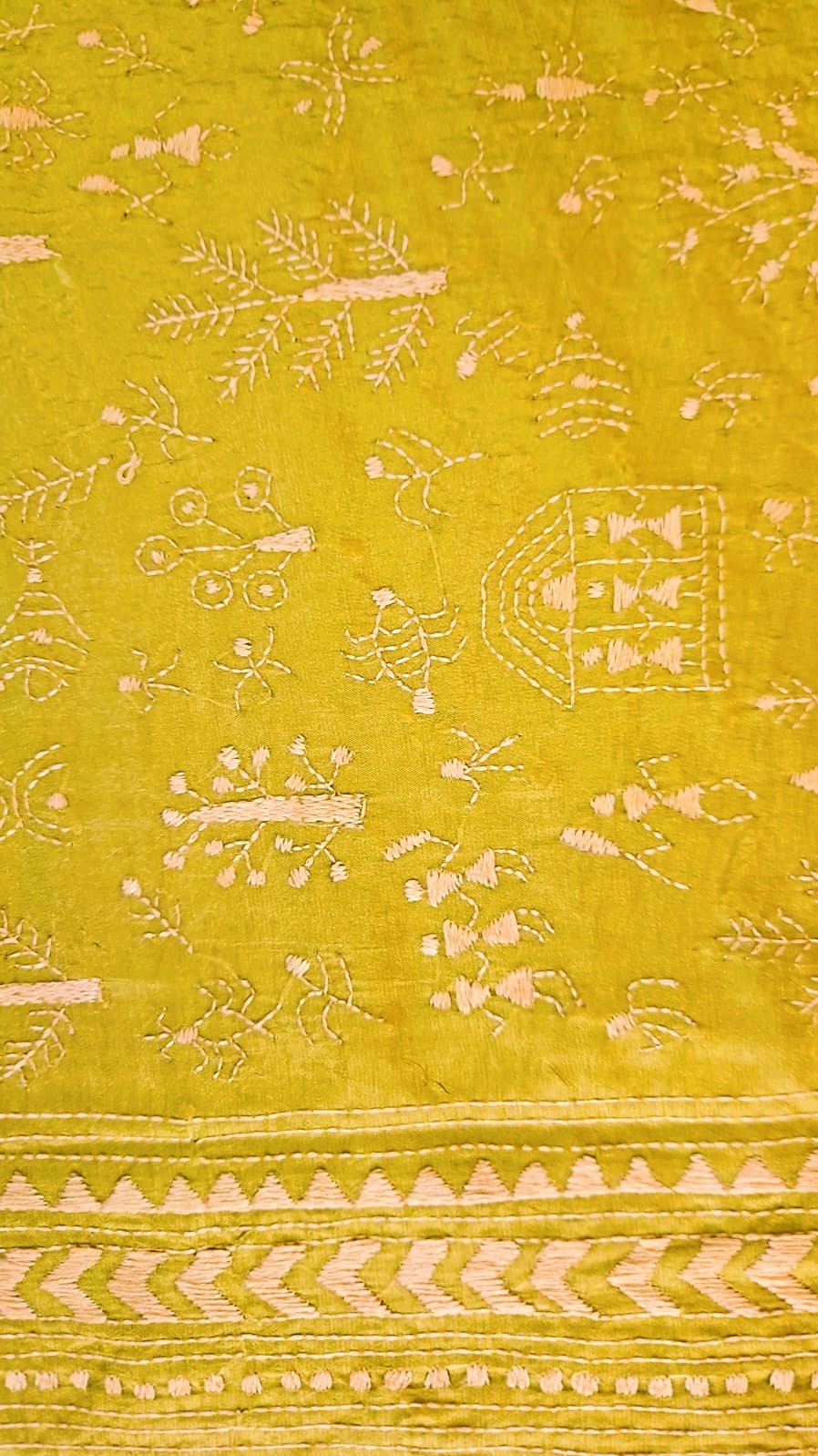 A timeless kantha stitch saree, adorned with handcrafted embroidery with folk-tale detailings