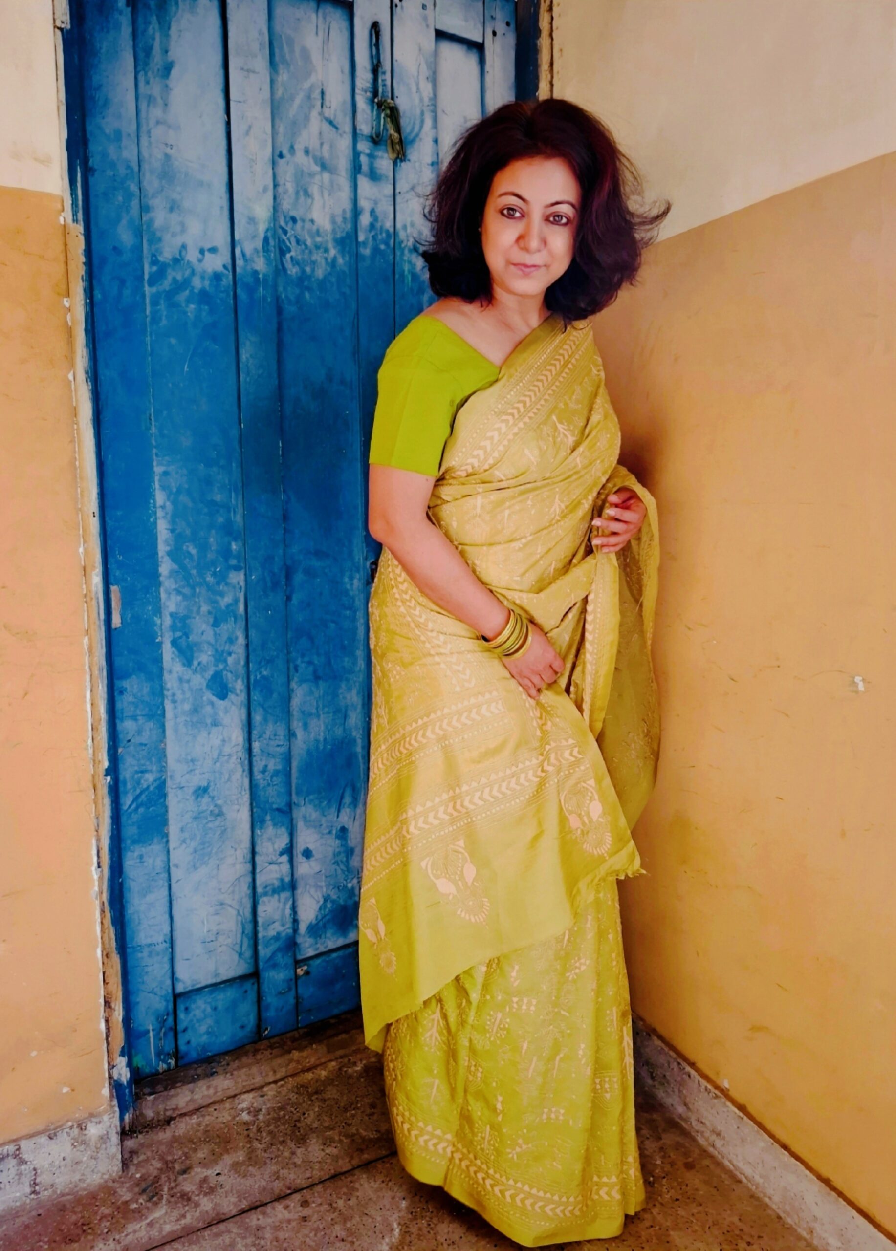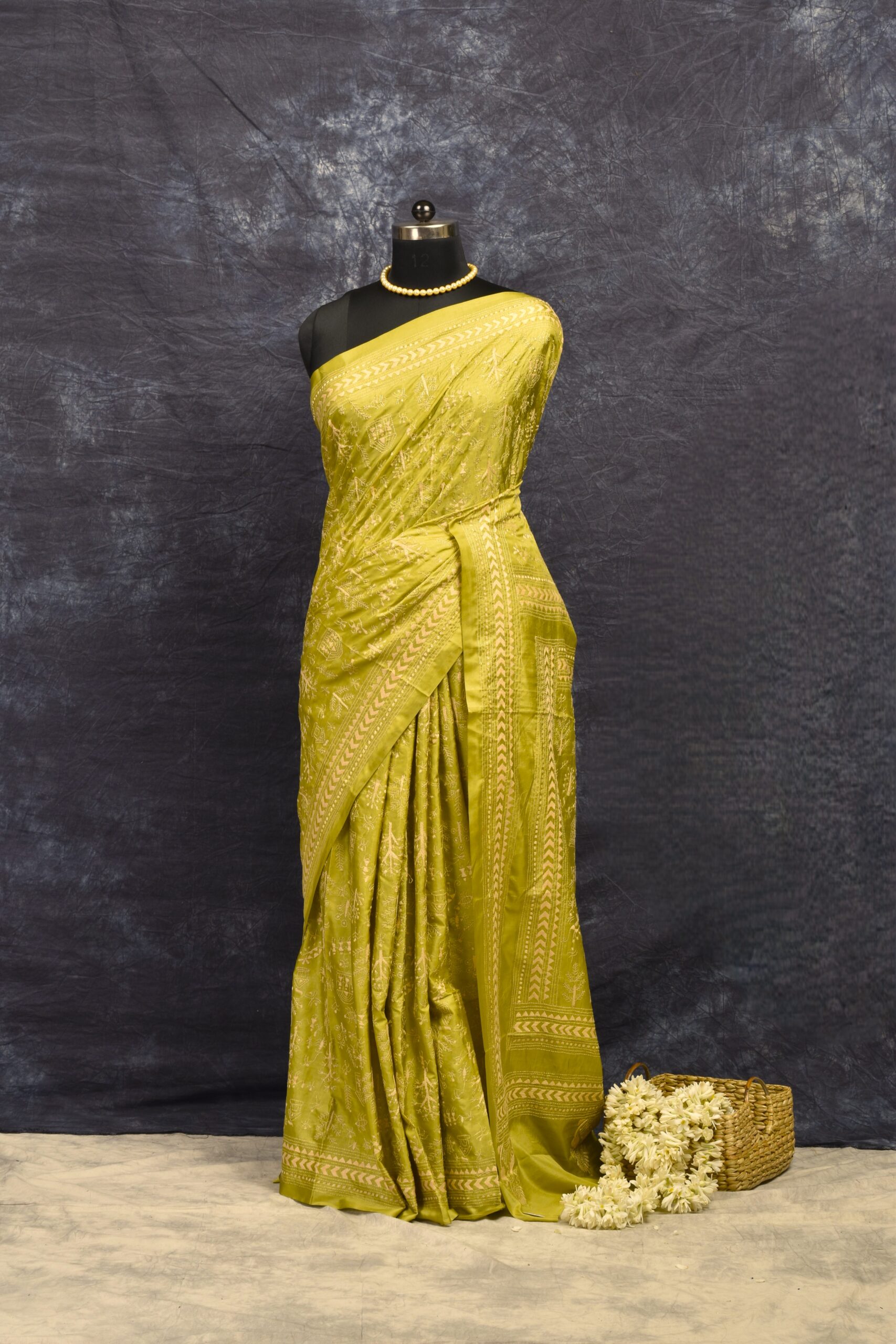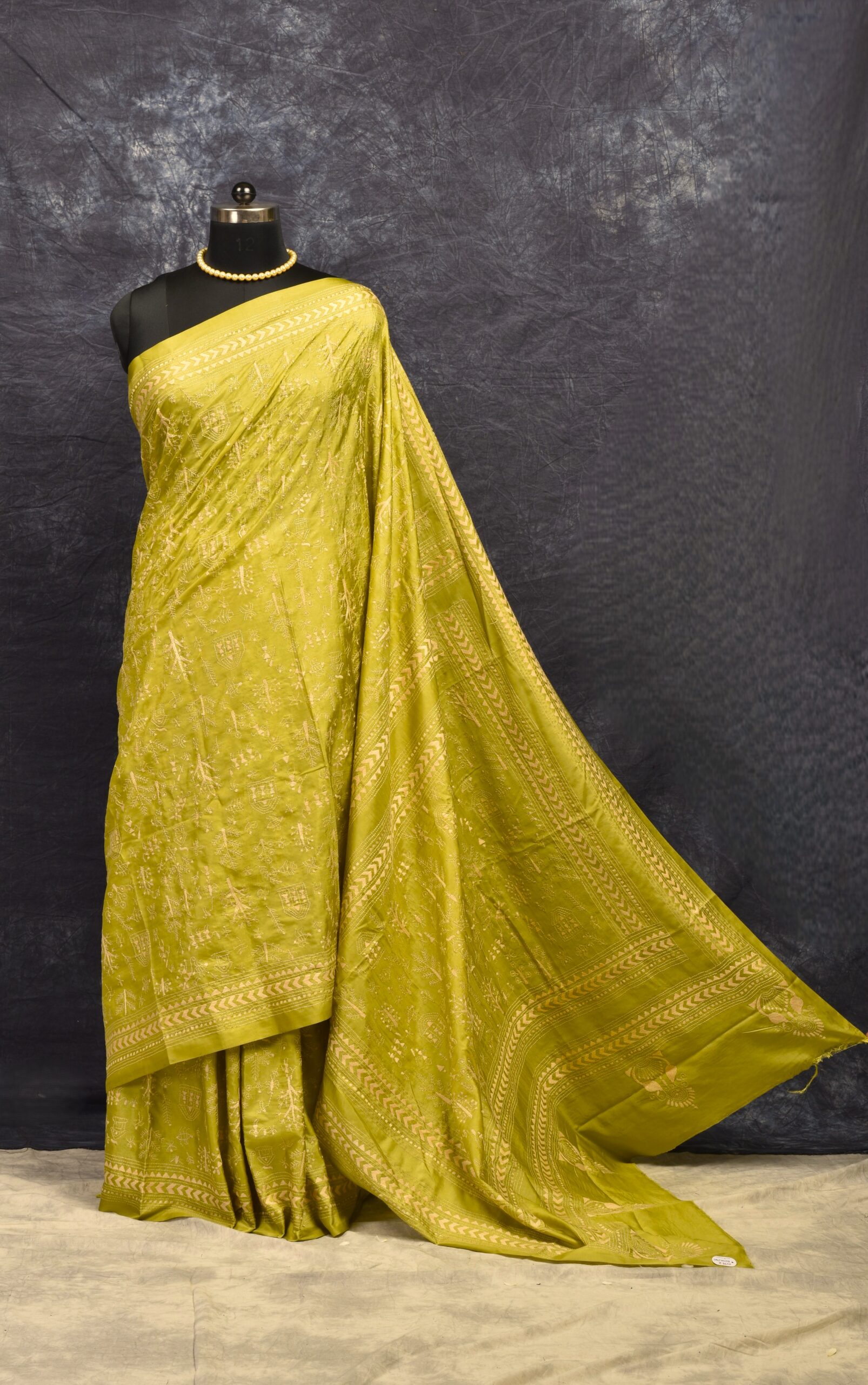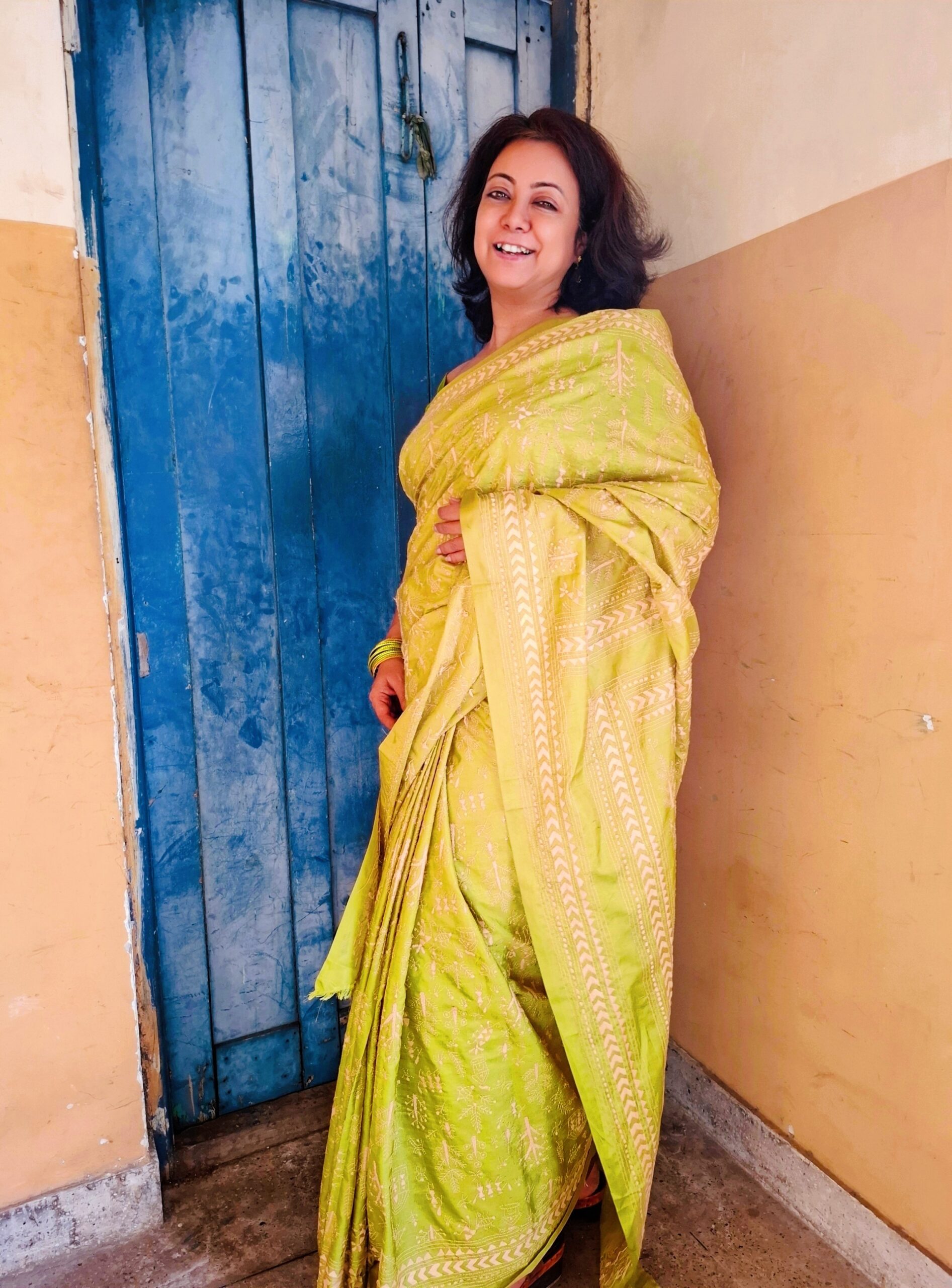 Categories: Women, myEthnix exclusive, Sarees, Semi silk, Kantha stitch