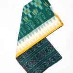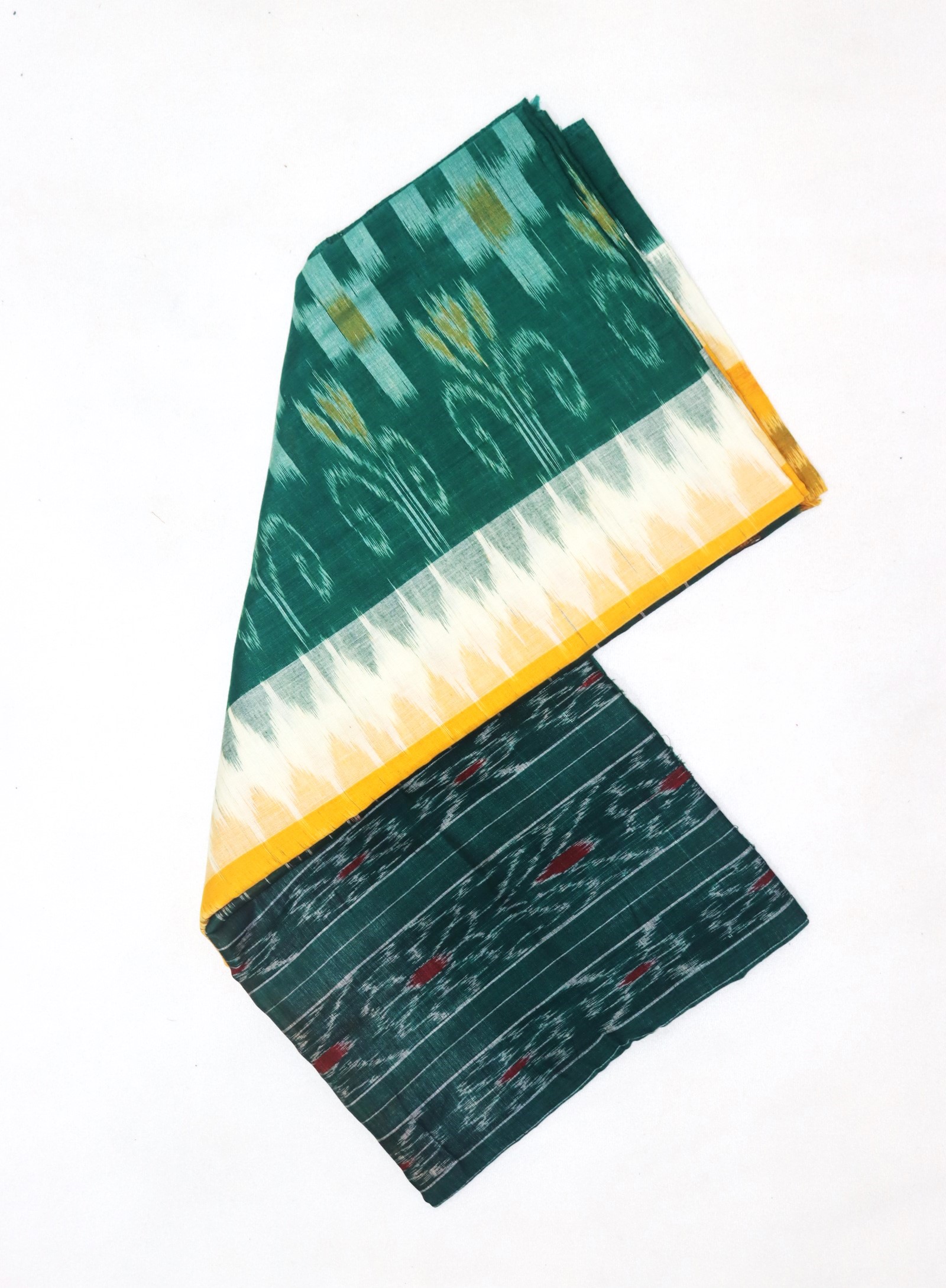 Dress Details: A yellow & green coloured cotton Sambalpuri Ikkat saree with temple border. Blouse piece not included.