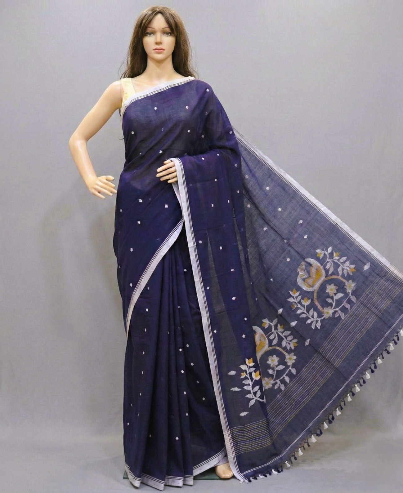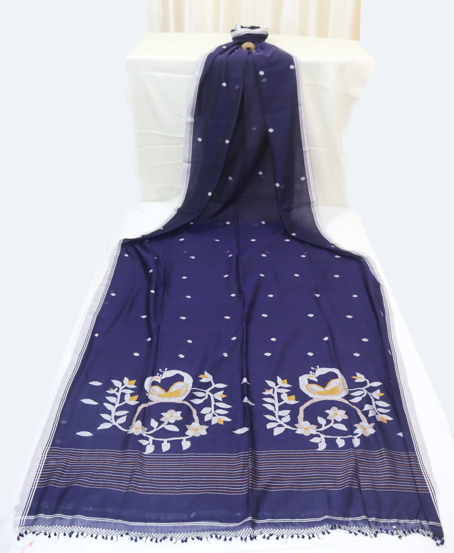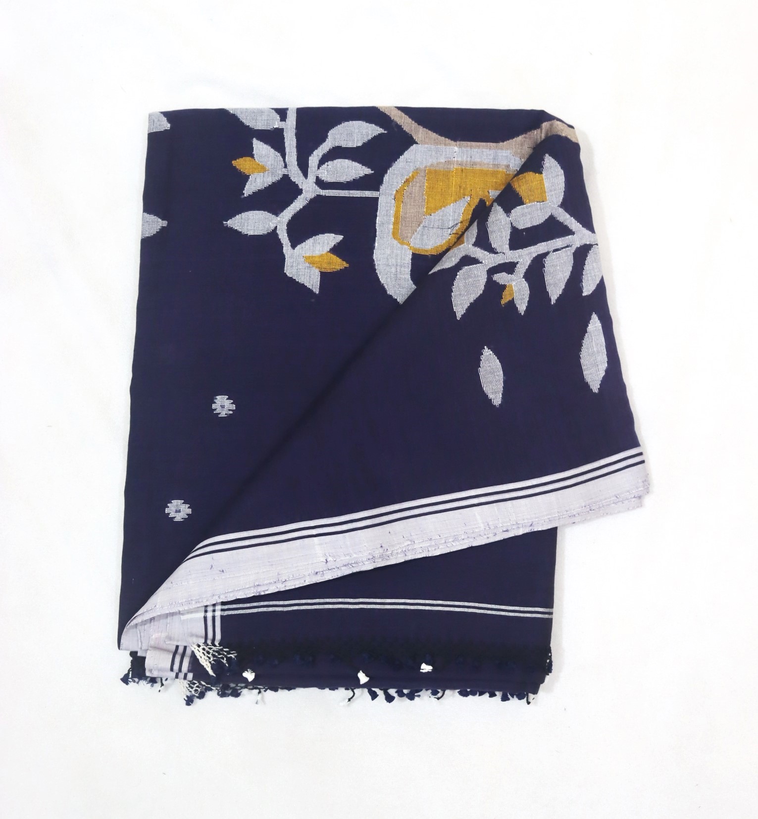 Pujarini – Pure Handloom Cotton Saree in Navy Blue