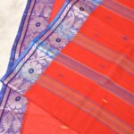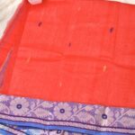Dress Details: Shantiputi tant saree with blue border in pure cotton. Blouse piece not attached